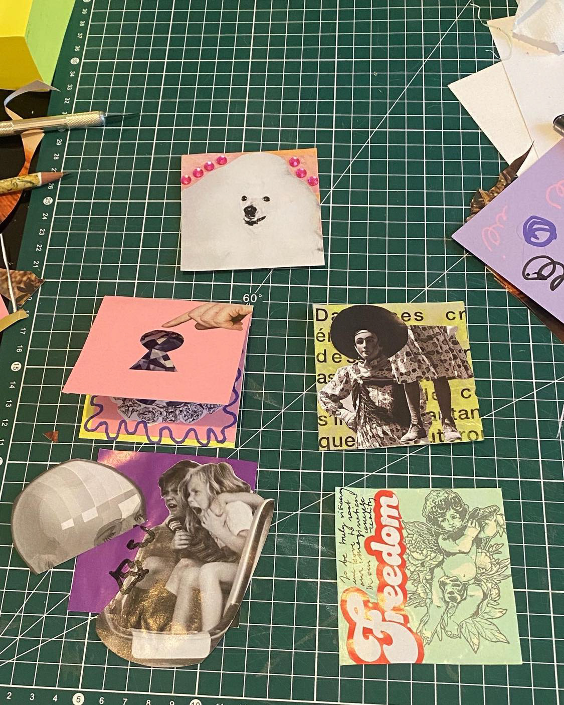Collages for World Collage Day 2022, created as a part of a World Collage Day exhibition of collage on Post-Its at de Krook in Ghent, Belgium